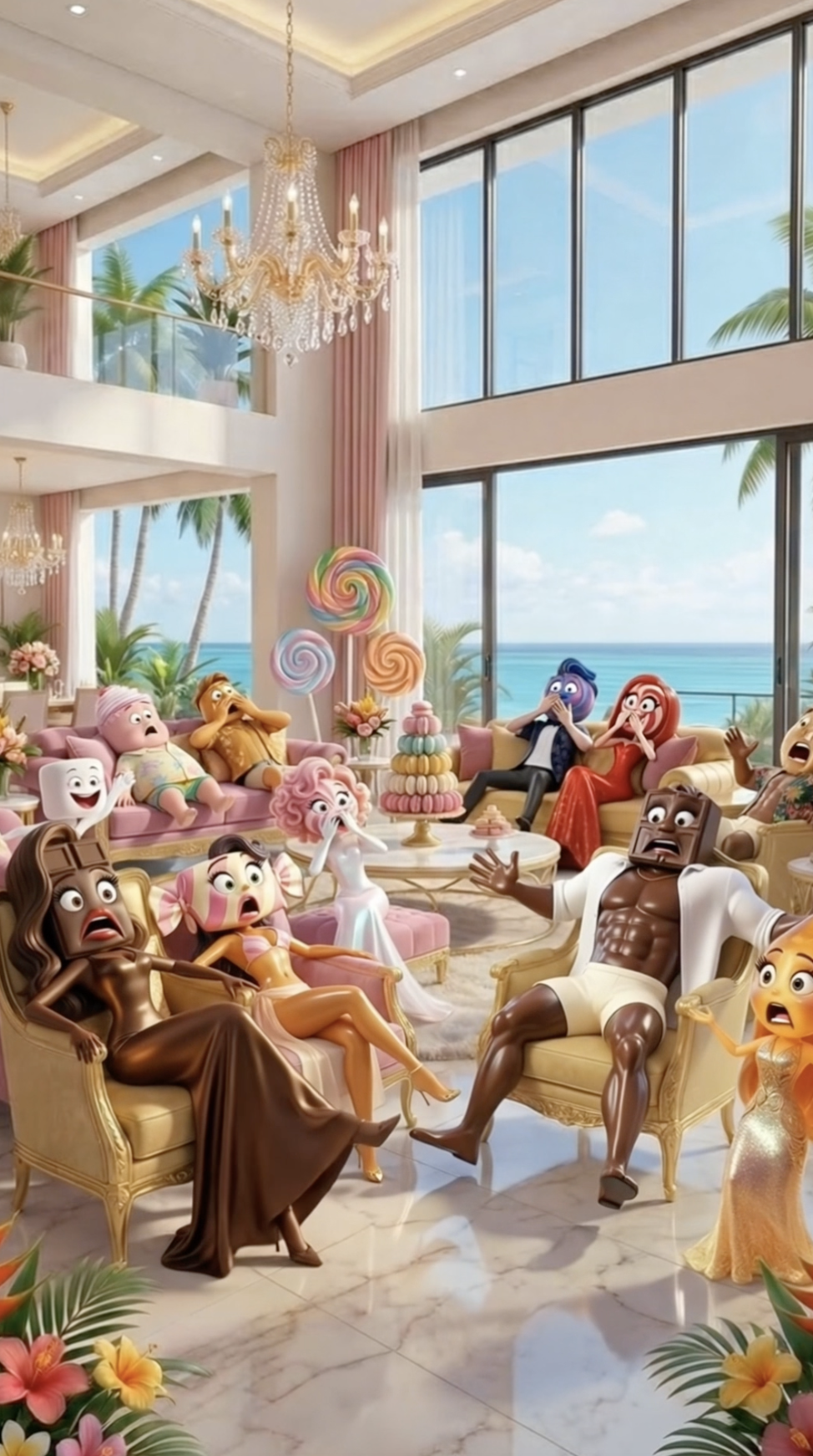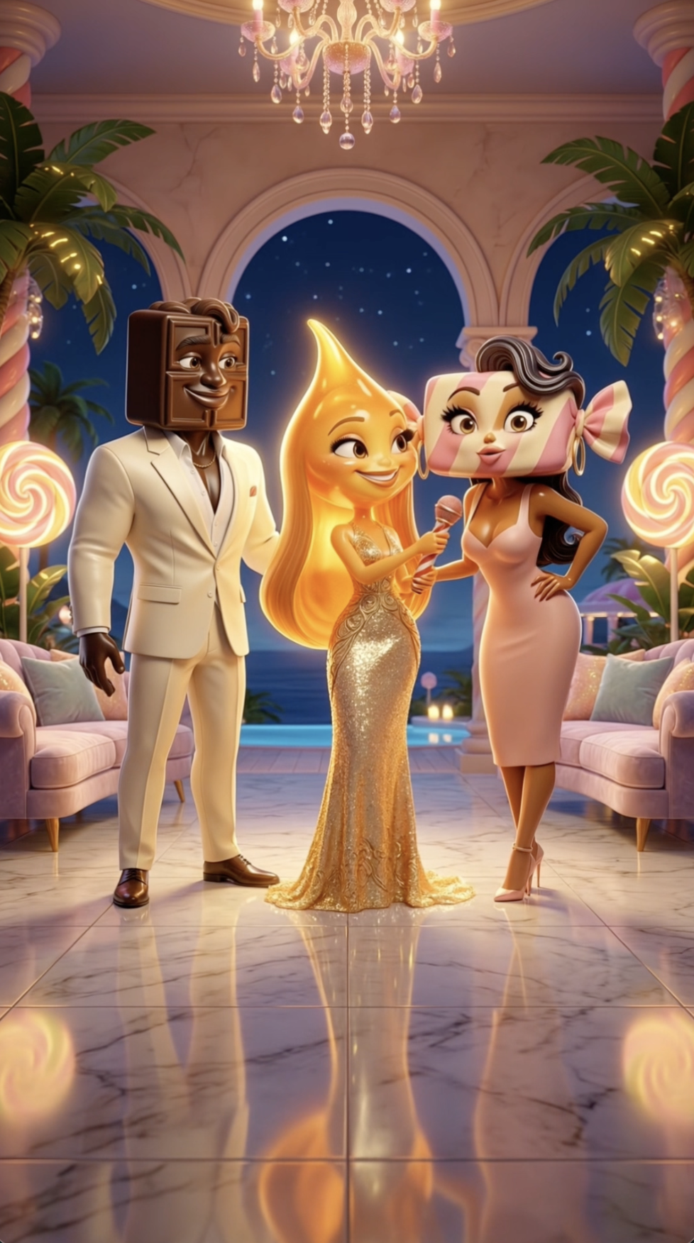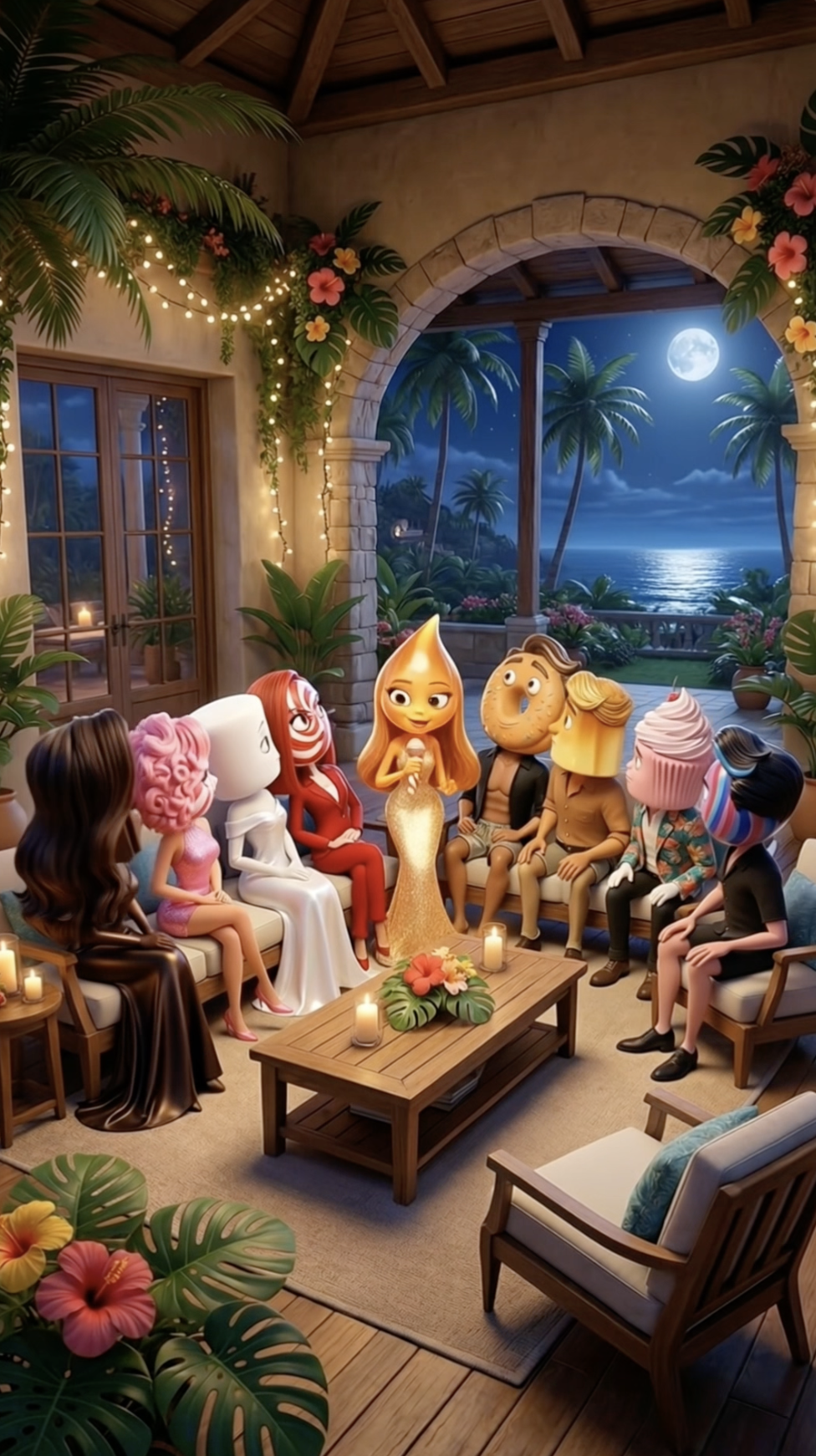 The girls are in control. One by one they walk to the centre and make their choice. Lollypoppa picks Jawbreakson. Marshmella picks Puddino. Chocolatina picks Caramello. And Candylicious? She picks Donutello. Again. The villa is shocked. Fudgiano was not chosen by anyone. He stands up, straightens his jacket, and leaves the island with class and without a single word. Goldie closes the ceremony with a warning — something bigger is coming.